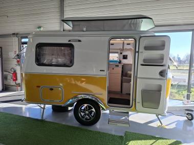 Une très jolie caravane, compacte, super équipée et pleine de peps avec sa carrosserie Nugget Gold et balnche. Elle sera idéale pour vos escapades à 2, et la traction sera facile.