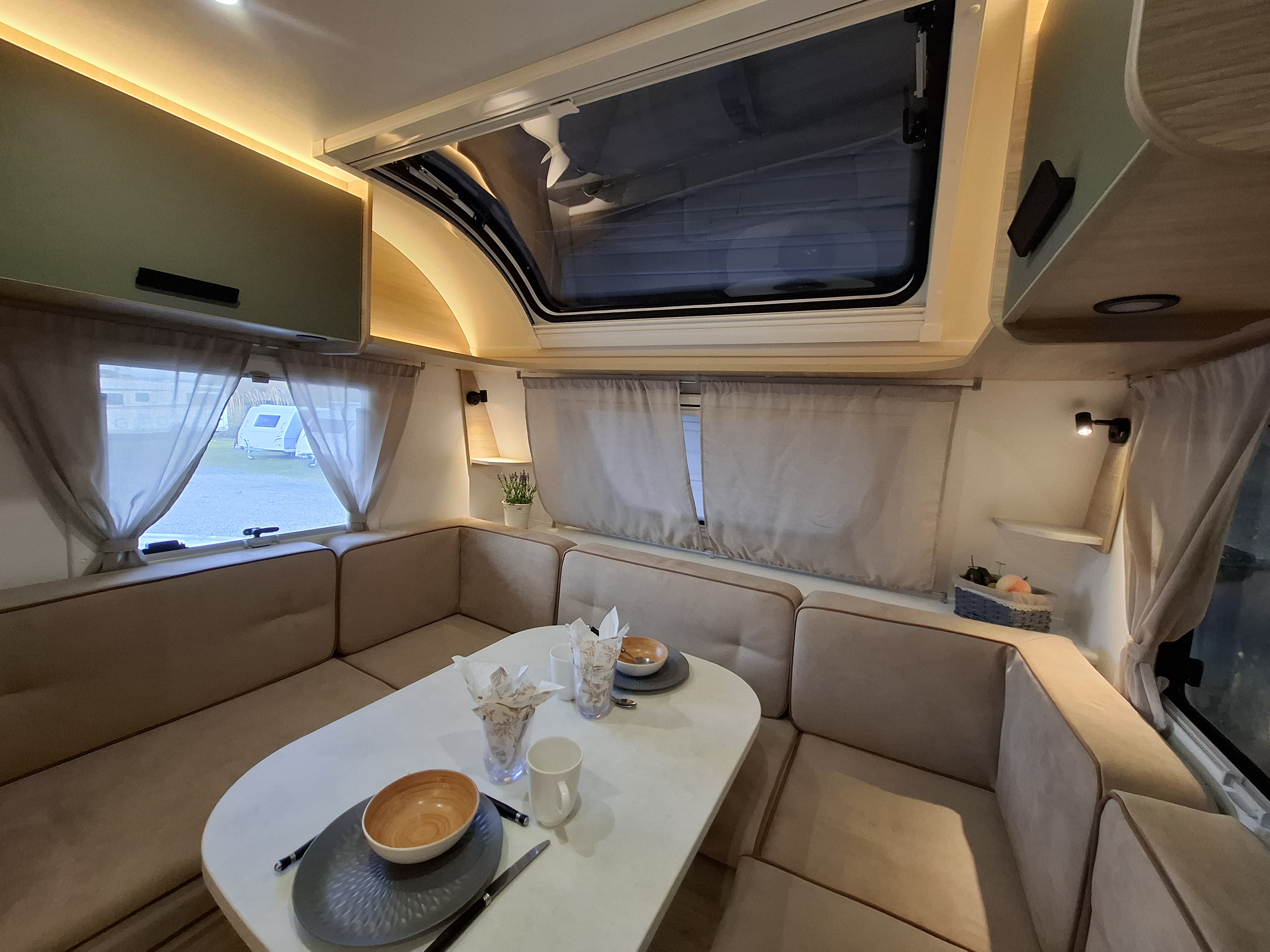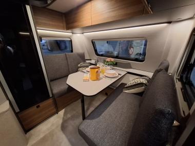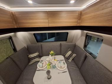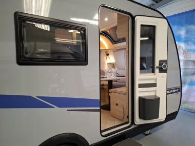 Intérieur élégant et design extérieur différent, pour cette belle caravane avec lit central, grand salon en U, douche et cabinet de toilette spacieux et innovant. Le dôme de toit au dessus du salon vous apportera une belle luminosité. L'EXCLUSIVE LINE dispose d'un excellent niveau d'équipements : grand réfrigérateur à compression, chauffage et eau chaude, géolocalisation. Elle sera mise à disposition avec un auvent classique, ou un auvent gonflable ou un store de toit posé. C'est vous qui choisissez !
