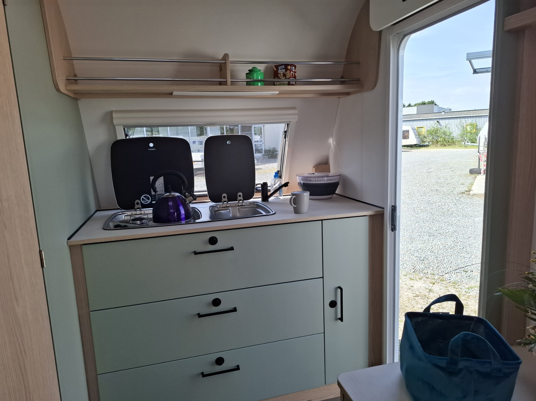 Tout nouveau modèle de Printemps 2026 : petite caravane, légère et très compacte, tout électrique, avec cuisine à l'arrière, grande dînette transformable en couchage :- standard de 138x190- ou XXL de 192x190- ou de type "lits jumeaux" de 2x (72x190)Tout électrique : plaque à induction, réfrigérateur à compressionNotre modèle partira avec un auvent classique ou un auvent gonfable (voir conditions en bas d'annonce), suivant votre choix !