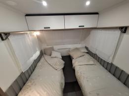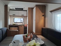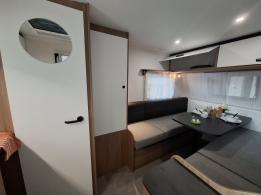 Petite caravane disposant d'un superbe espace de vie grace à la conception unique du couchage : lit confortable qui se replie et se déplie sans effort. Ambiance élégante et excellent niveau d'équipements : grand réfrigérateur, chauffage, eau chaude, douche. Garantie étanchéité de 11 ans.