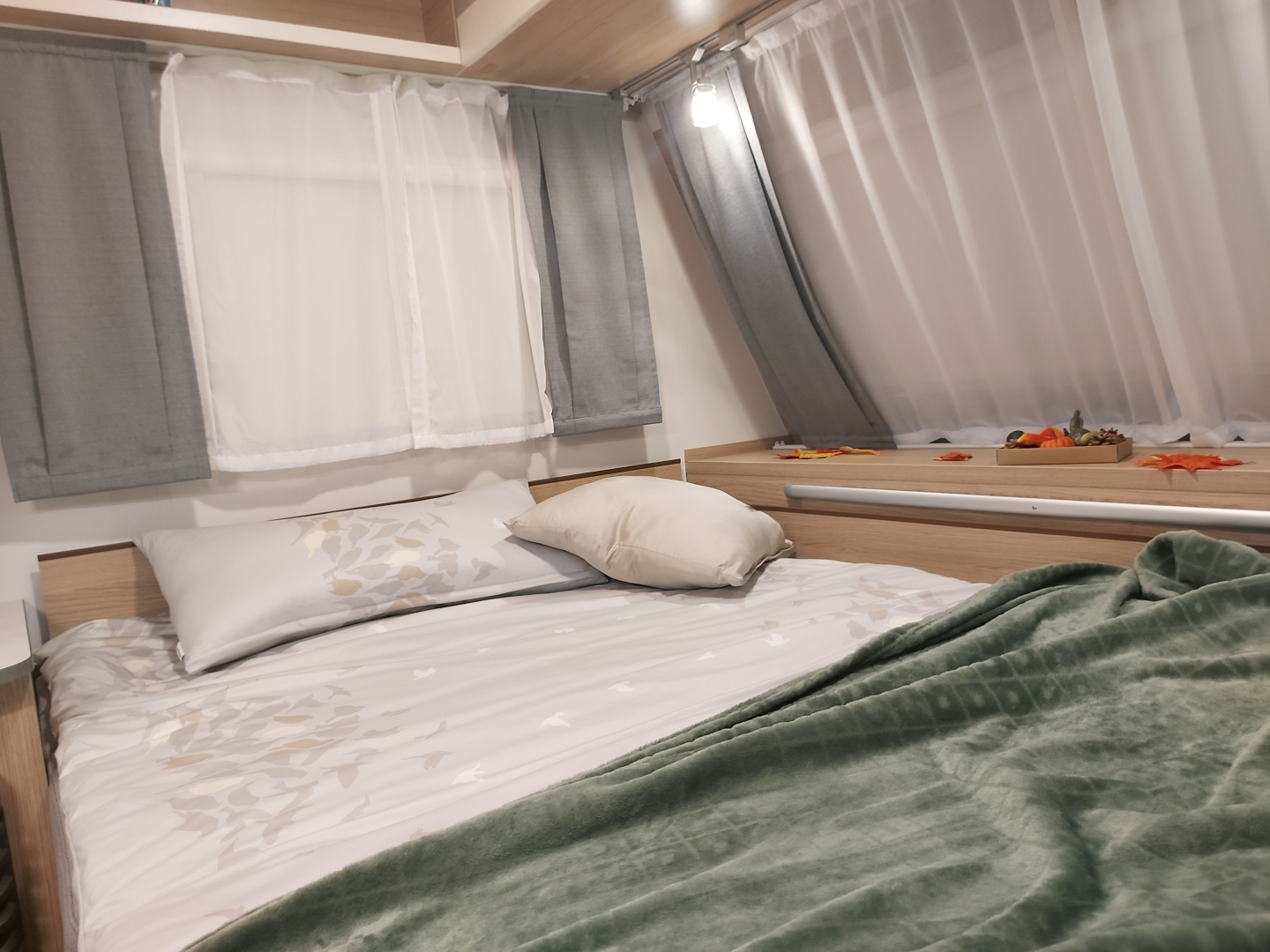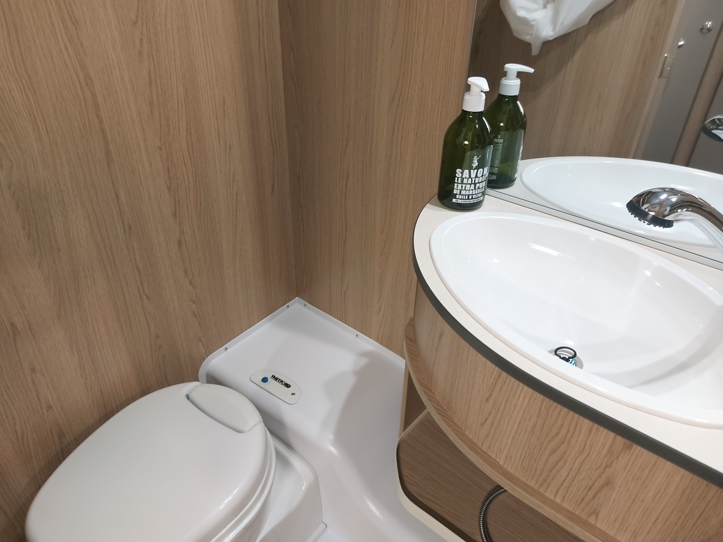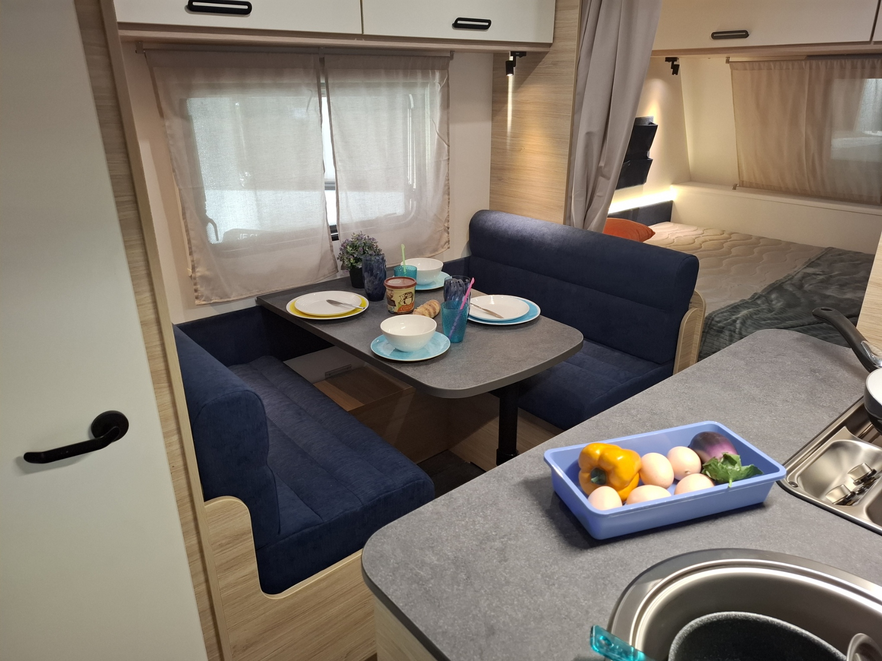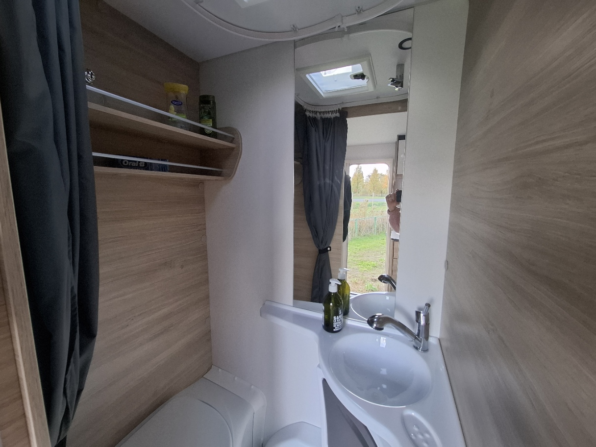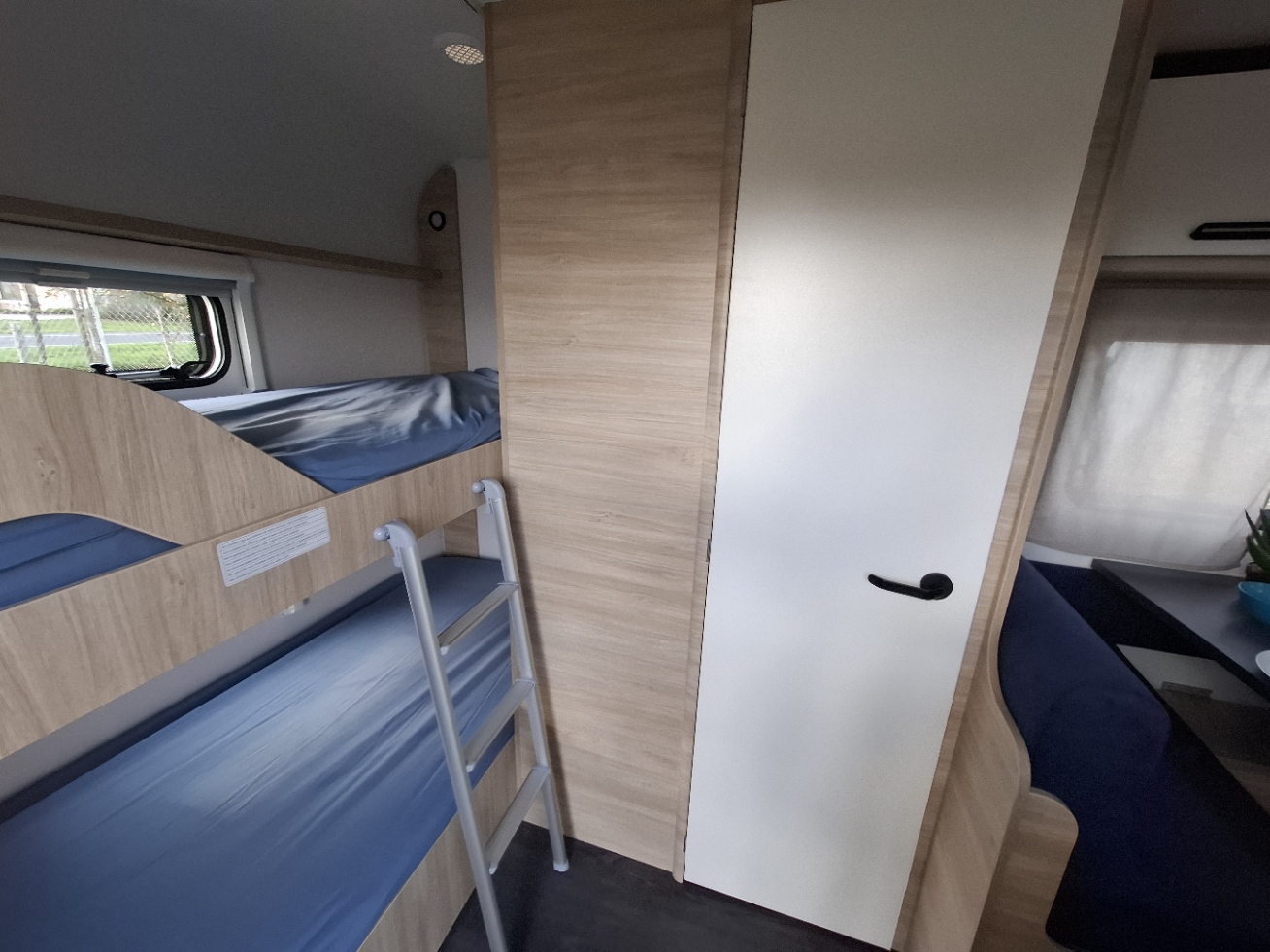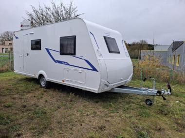 Une vraie caravane familiale avec des couchages confortables (lit parental permanent, 2 lits superposés "enfants"), un grand réfrigérateur à compression, un cabinet de toilette avec équipement douche, des rangements faciles et nombreux, tout cela dans des dimensions raisonnables. Nous l'avons équipé des Packs Safety, Cosy et Shower et du chauffage gaz à air pulsé. Elle sera mise à disposition avec au choix, un auvent classique, ou un auvent gonflable ou un store de paroi (voir conditions en bas d'annonce).