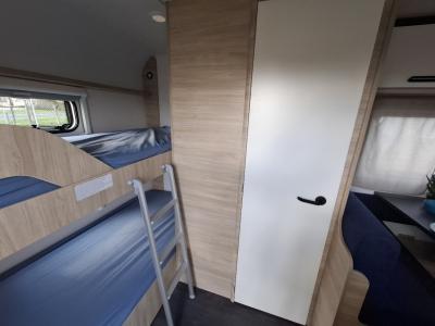 Caravane familiale de petite dimension, offrant un grand confort et un excellent niveau d'équipements : 2 lits superposés de belles dimensions susceptibles de supporter un poids de 80 kg, dînette confortable, de nombreux rangements, grand réfrigérateur à compression, chauffage, eau chaude, équipement douche et auvent classique TRIGANO. A noter que les couchettes superposées supportent chacune, un poids de 80 kg et possèdent une largeur de 71 cm !