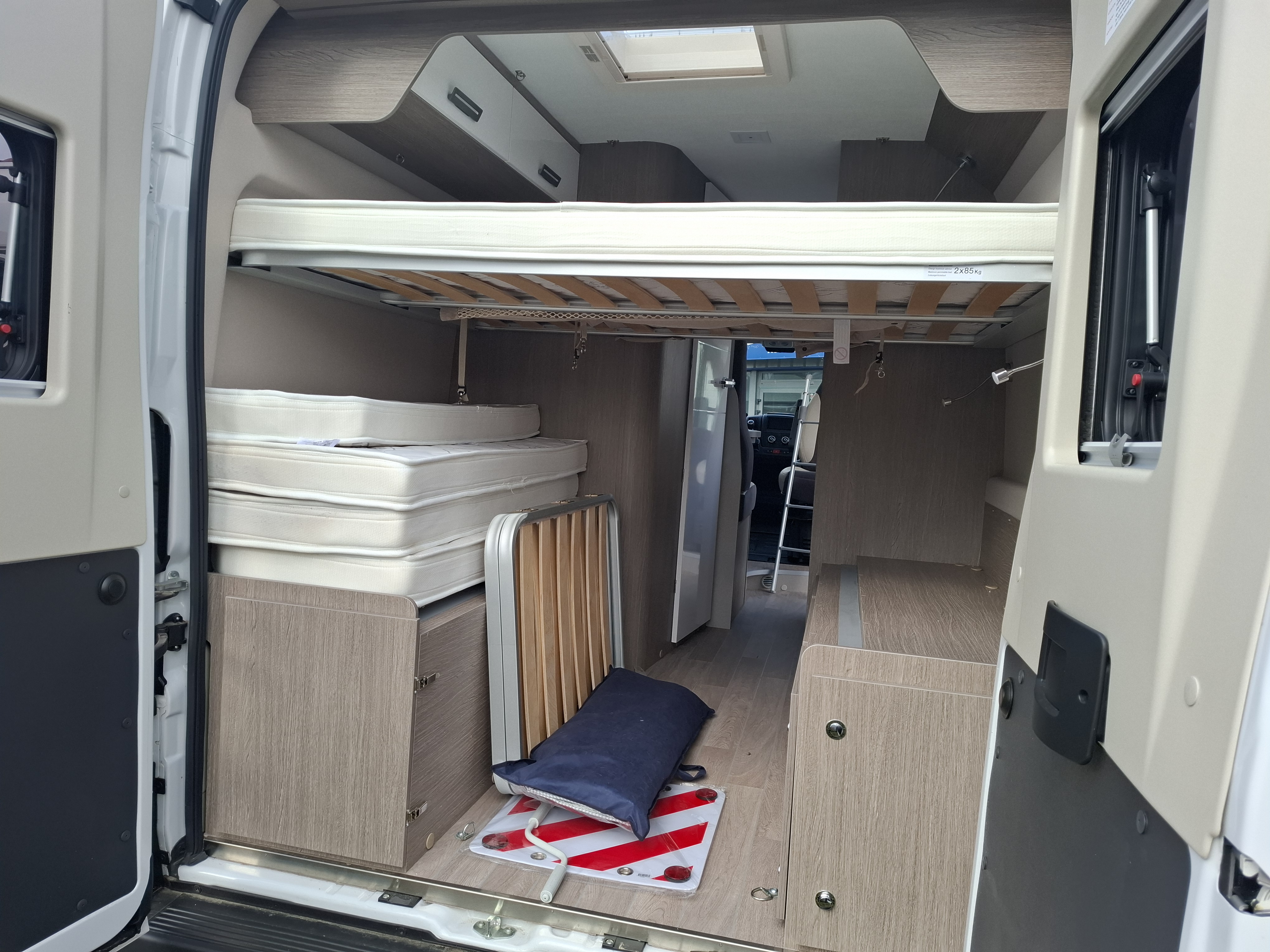Un couchage facilité (lits jumeaux et/ou couchage XXL), une motorisation au top (170 CV et boîte automatique), un excellent niveau d'équipements, la fiabilité d'une marque de groupe HYMER (12 ans de garantie étanchété) et un design résolument différent (couleur de carrosserie Gris Magnetic)