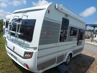 Jolie caravane d'occasion disposant de 4 couchages, climatisation, vraie cabine de douche, chauffage, chauffe-eau, store, antenne TV, porte-vélos. Totalement révisée. Garantie 12 mois.